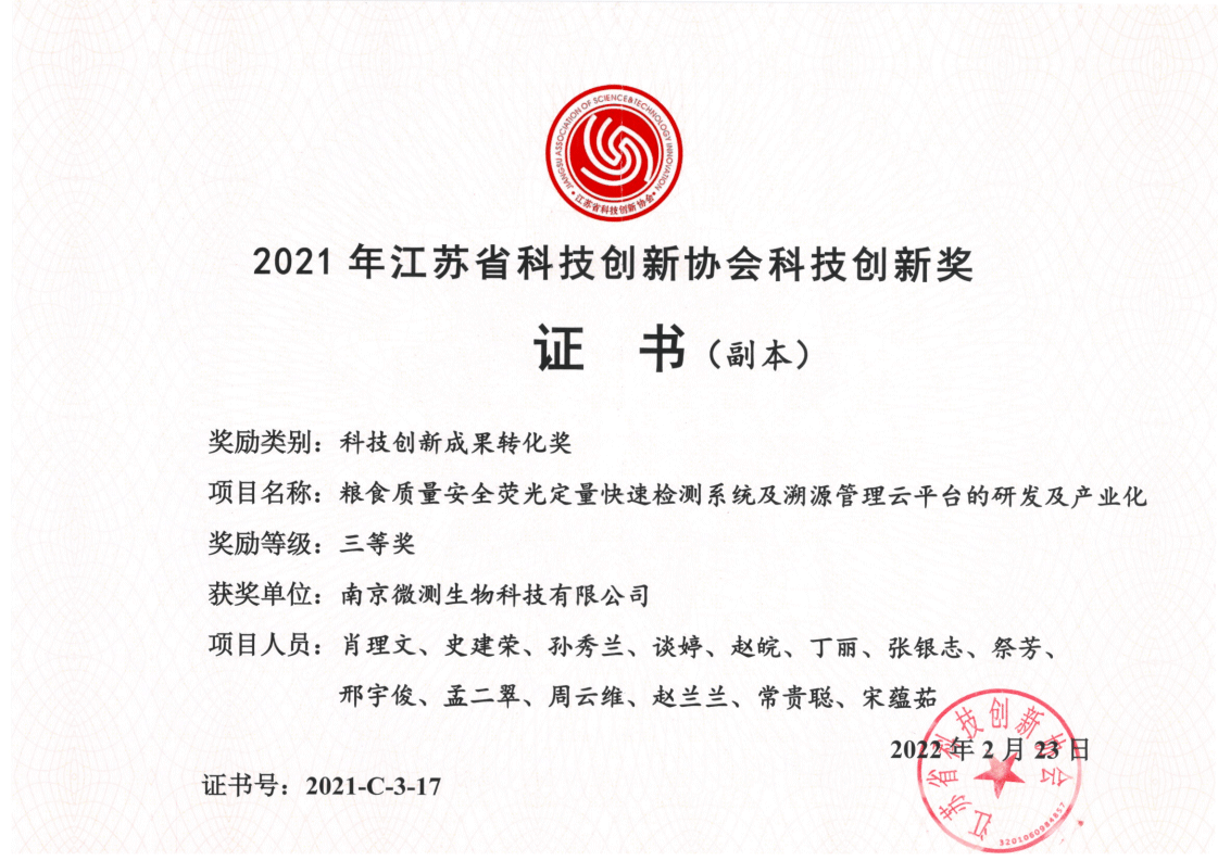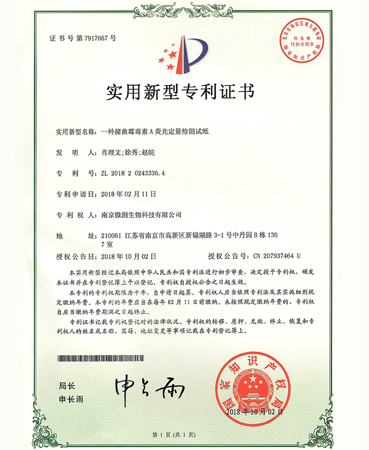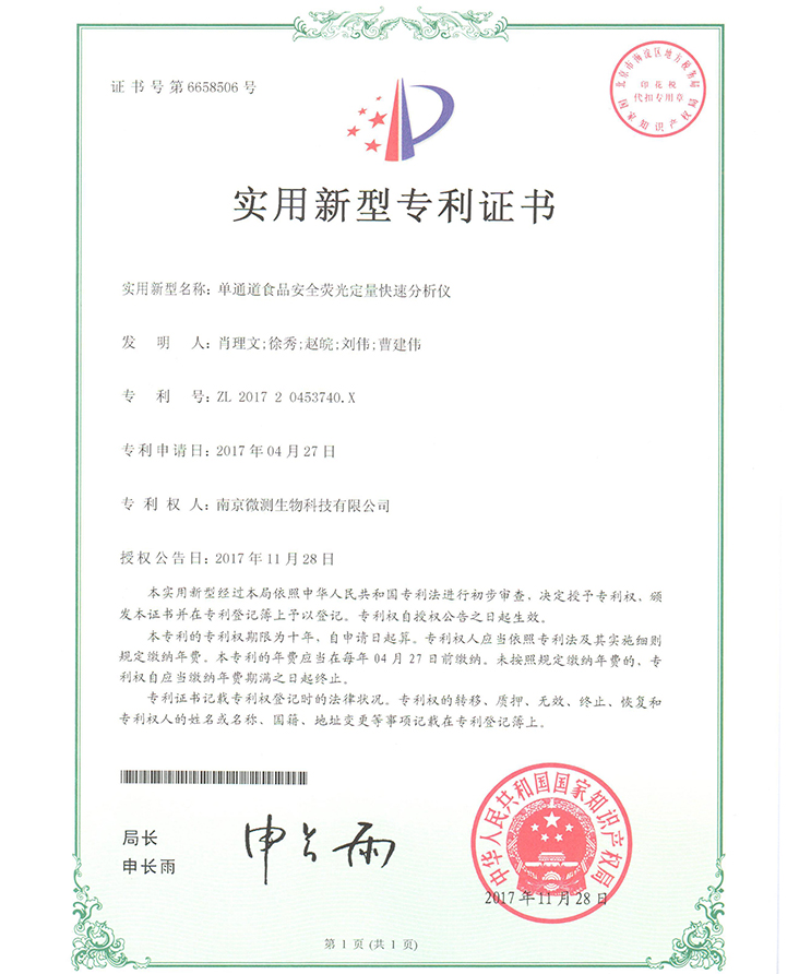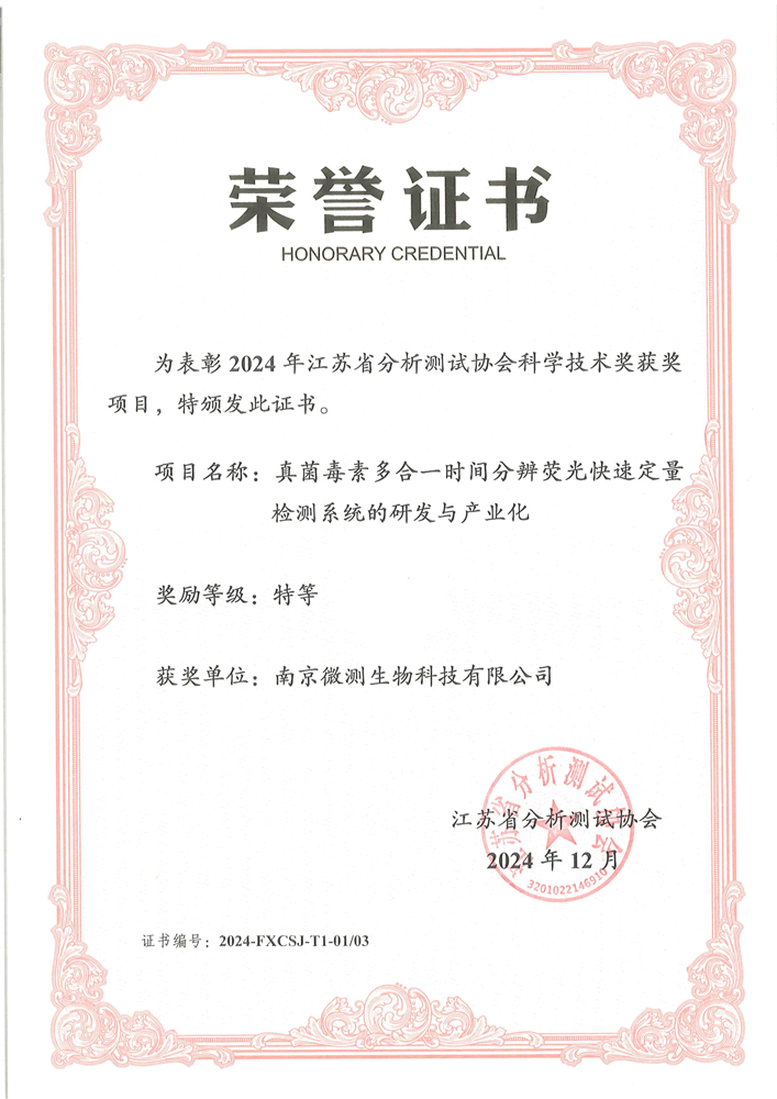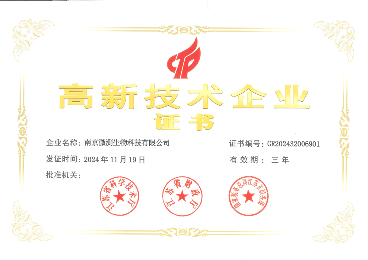 南京微測生物科技有限公司是一家致力于食品安全與動物疾病領(lǐng)域快速檢測技術(shù)和產(chǎn)品開發(fā)的國家級高新技術(shù)企業(yè)。自主開發(fā)的食品安全熒光定量FPOCT快速檢測技術(shù)平臺,具有靈敏度高、定量范圍寬、準(zhǔn)確度高、穩(wěn)定性強(qiáng)、操作快速簡便等優(yōu)點(diǎn),正逐步替代膠體金試紙條和酶免試劑盒等傳統(tǒng)快速檢測產(chǎn)品,引導(dǎo)國內(nèi)食品安全和動物疾病快速檢測從粗略定性到準(zhǔn)確定量的升級換代。公司非常重視知識產(chǎn)權(quán)的保護(hù),目前已申請專利、軟著等20余項(xiàng),承擔(dān)江蘇省創(chuàng)新基金科研項(xiàng)目一項(xiàng),榮獲“江蘇省民營科技企業(yè)”和“國家高新技術(shù)企業(yè)”稱號。