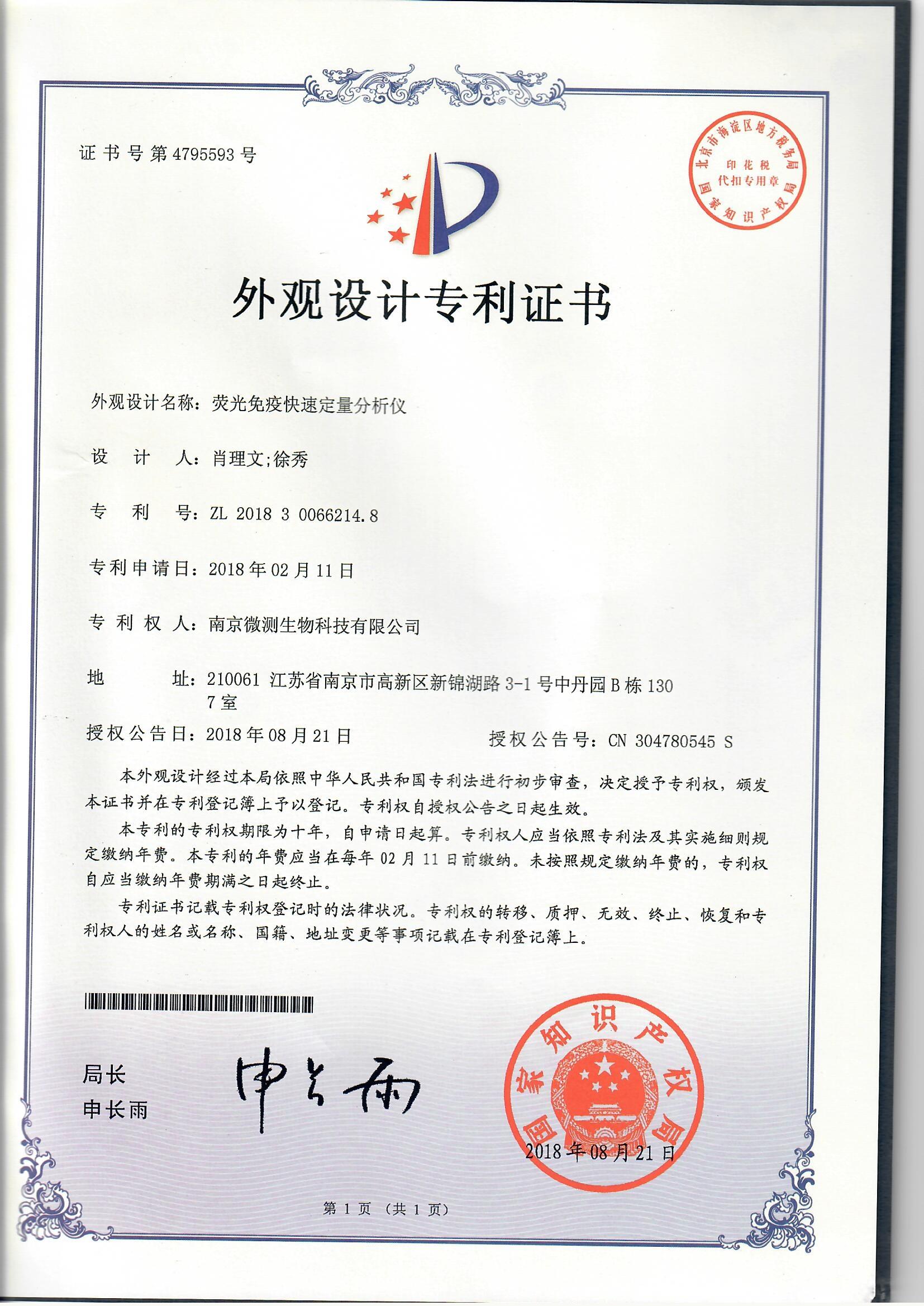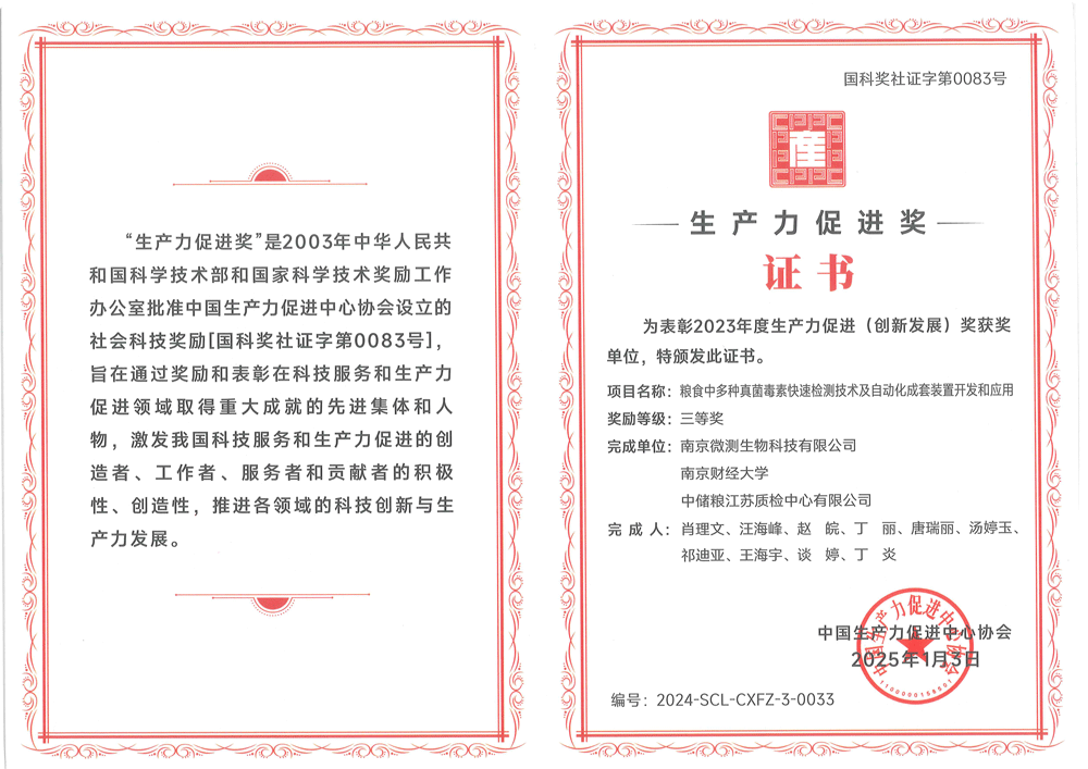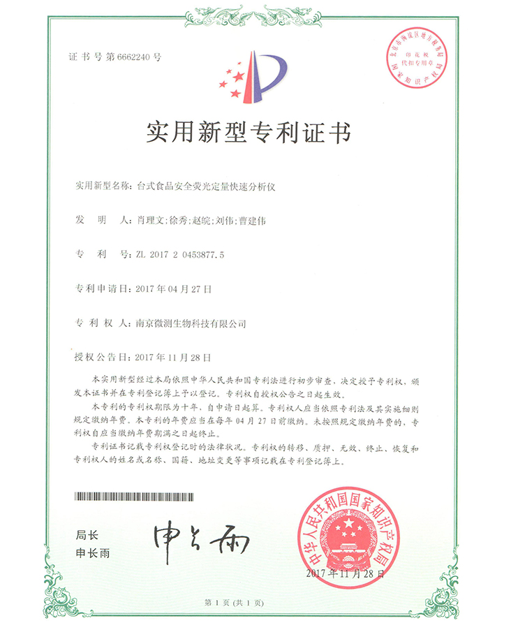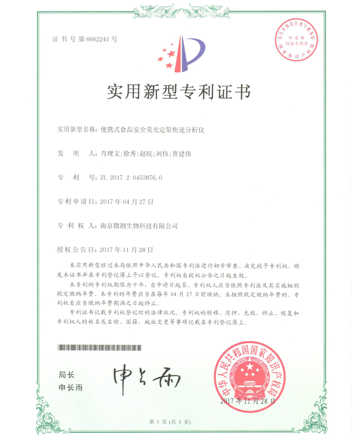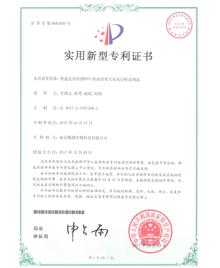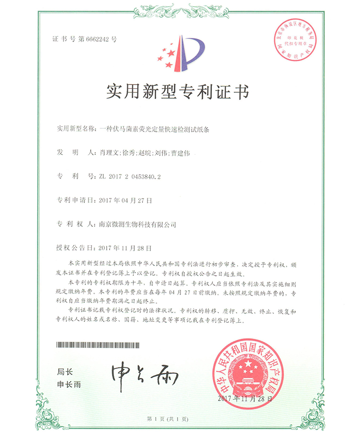 南京微測生物科技有限公司是一家致力于食品安全與動物疾病領(lǐng)域快速檢測技術(shù)和產(chǎn)品開發(fā)的國家級高新技術(shù)企業(yè)。自主開發(fā)的食品安全熒光定量FPOCT快速檢測技術(shù)平臺,具有靈敏度高、定量范圍寬、準(zhǔn)確度高、穩(wěn)定性強(qiáng)、操作快速簡便等優(yōu)點(diǎn),正逐步替代膠體金試紙條和酶免試劑盒等傳統(tǒng)快速檢測產(chǎn)品,引導(dǎo)國內(nèi)食品安全和動物疾病快速檢測從粗略定性到準(zhǔn)確定量的升級換代。公司非常重視知識產(chǎn)權(quán)的保護(hù),目前已申請專利、軟著等20余項(xiàng),承擔(dān)江蘇省創(chuàng)新基金科研項(xiàng)目一項(xiàng),榮獲“江蘇省民營科技企業(yè)”和“國家高新技術(shù)企業(yè)”稱號。